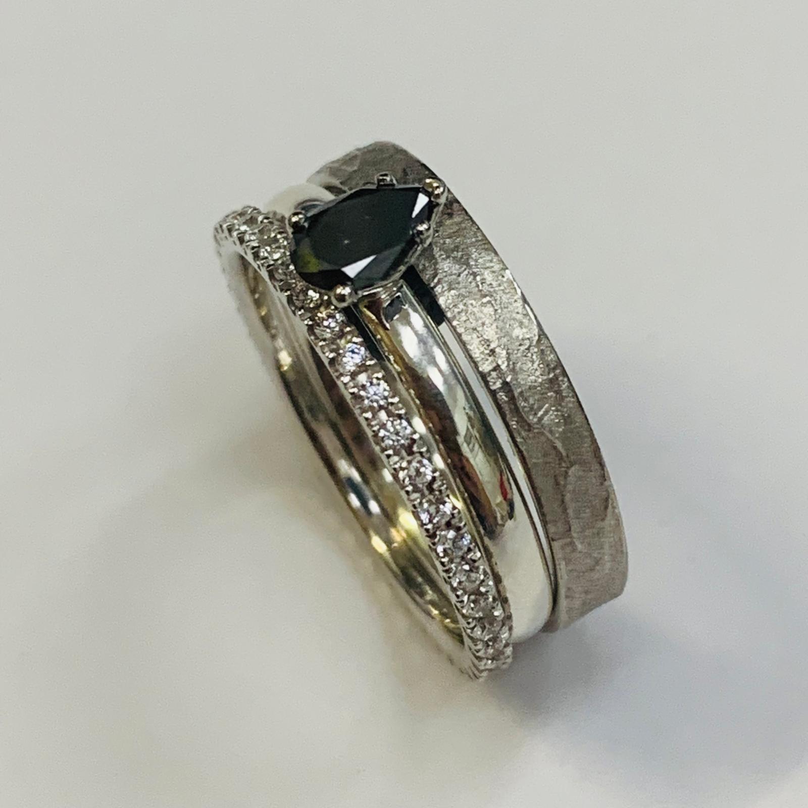 Hier war der Wunsch, dass der Brillant schwarz sein soll! Die Fassung kann dieser später auch schön mit einem Memoirering und oder einem Trauring kombiniert werden